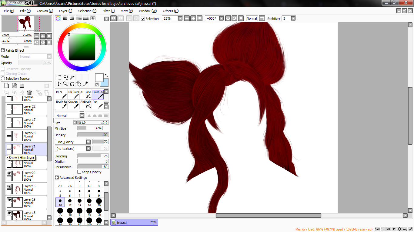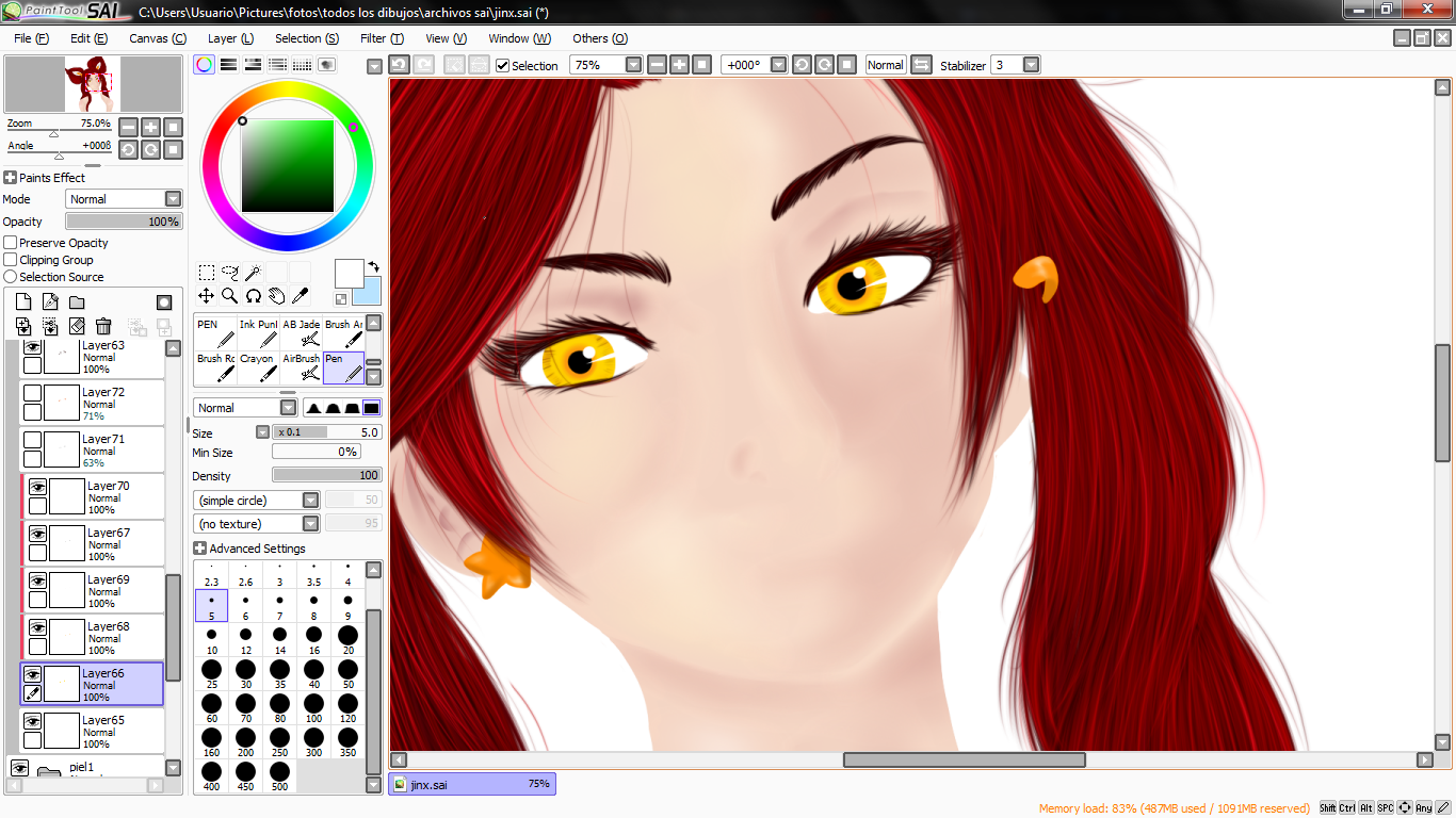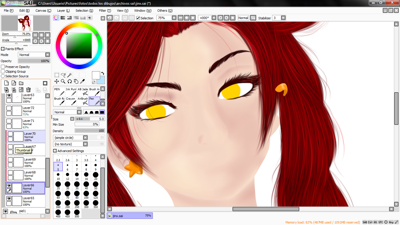 lo primero que hice luego de tener el boceto, fue el cabello, esta vez tome como referencia varias imagenes tanto del personaje dentro del juego como de una cosplayer llamada glory para ver bien el color del cabello.