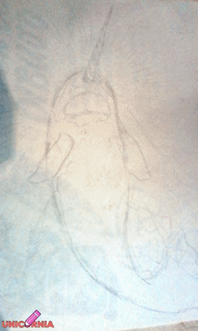 ๐ณ After that, I painted the contour of the narwhal using 3 different brushes (it had to look like the main figure of the drawing, holding the visible chart on its mouth).