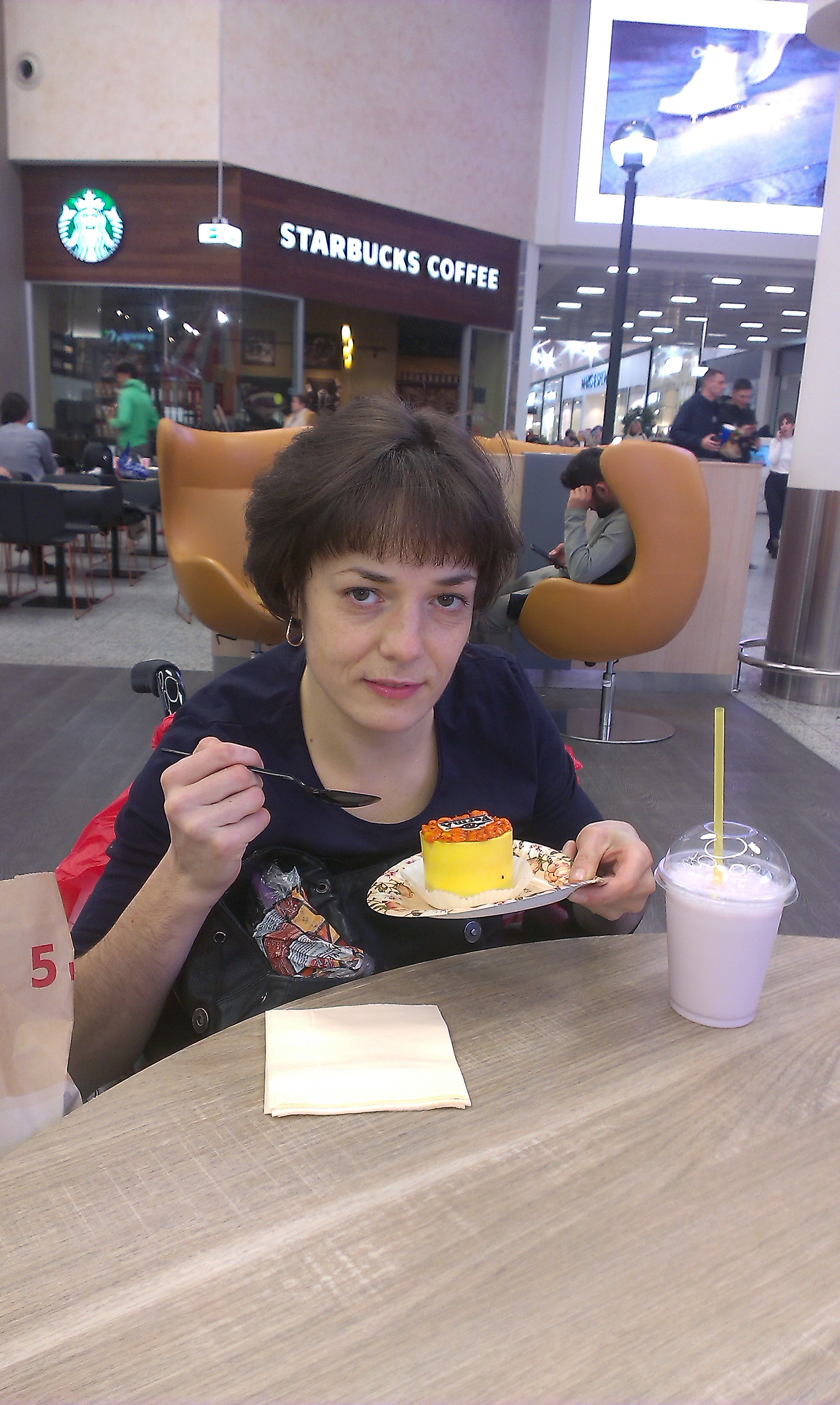 Но хочется чего-нибудь новенькое. И я решила купить лимонно-оранжевое пирожное с яблоком и облепихой.