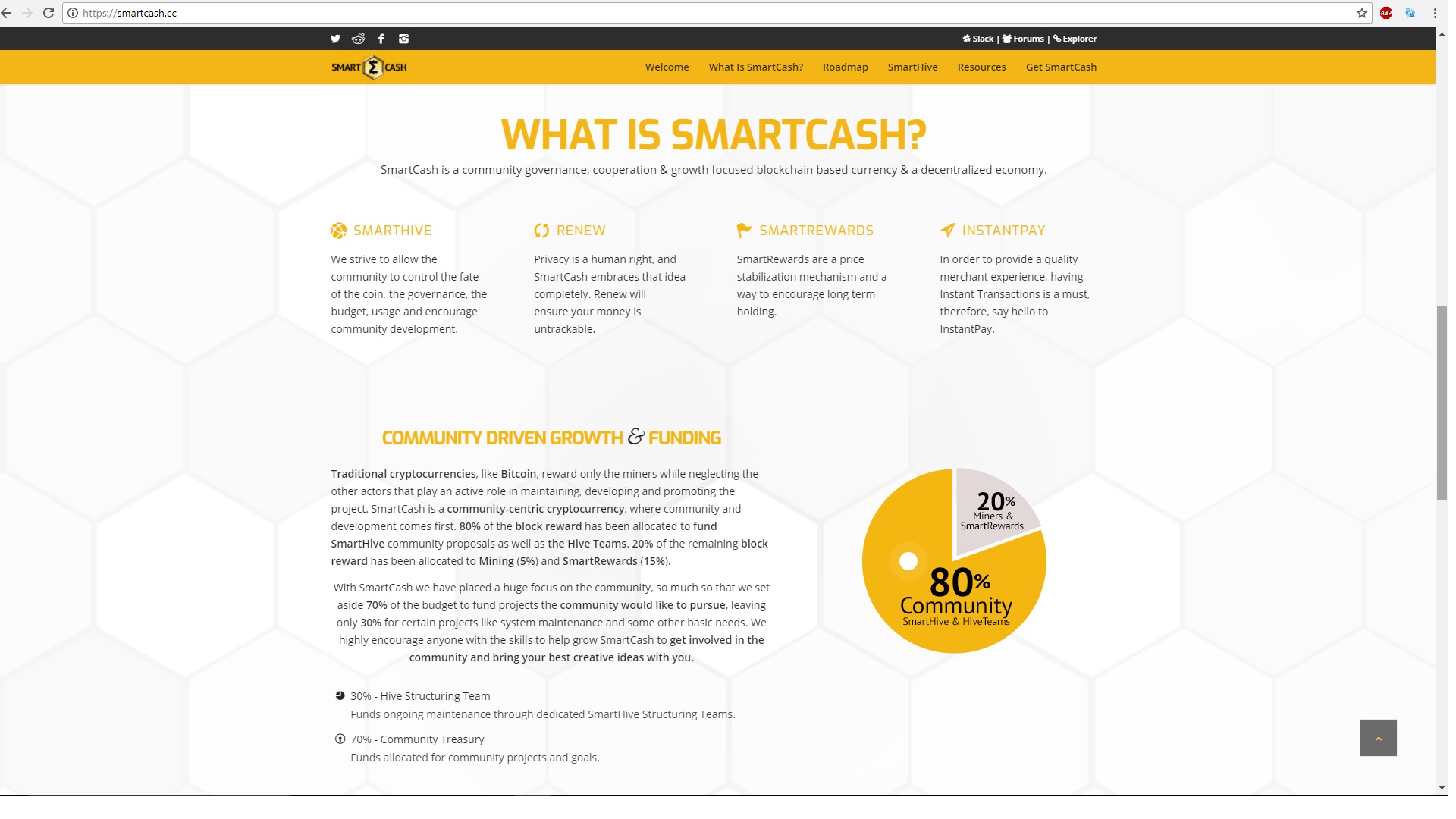 SmartCash is continuously thriving to become a successful community driven economic platform that will give it's User(s) Power of Privacy and decentralization through Zerocoin protocol and SmartHive Governance Platform respectively.