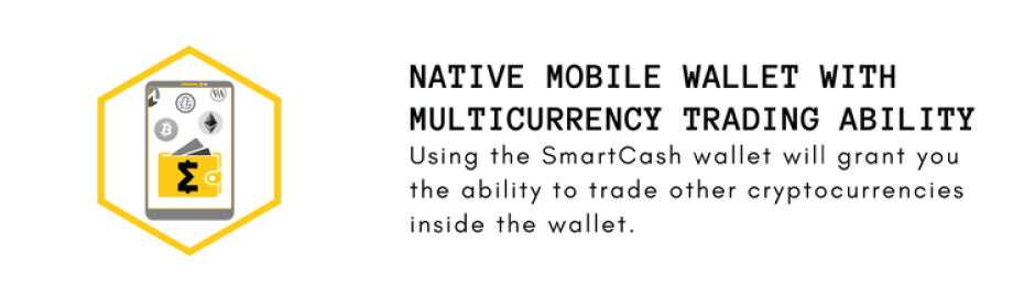 - The ability to trade between other cryptocurrencies with Smartcash on the go in a mobile wallet is just another example of Smartcash having ease of use and it's community of users in mind.