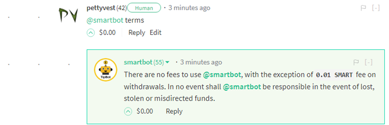 Make use of this command in order to ensure you are up to date with terms of the SmartCash TipBot. The command will look as follows: