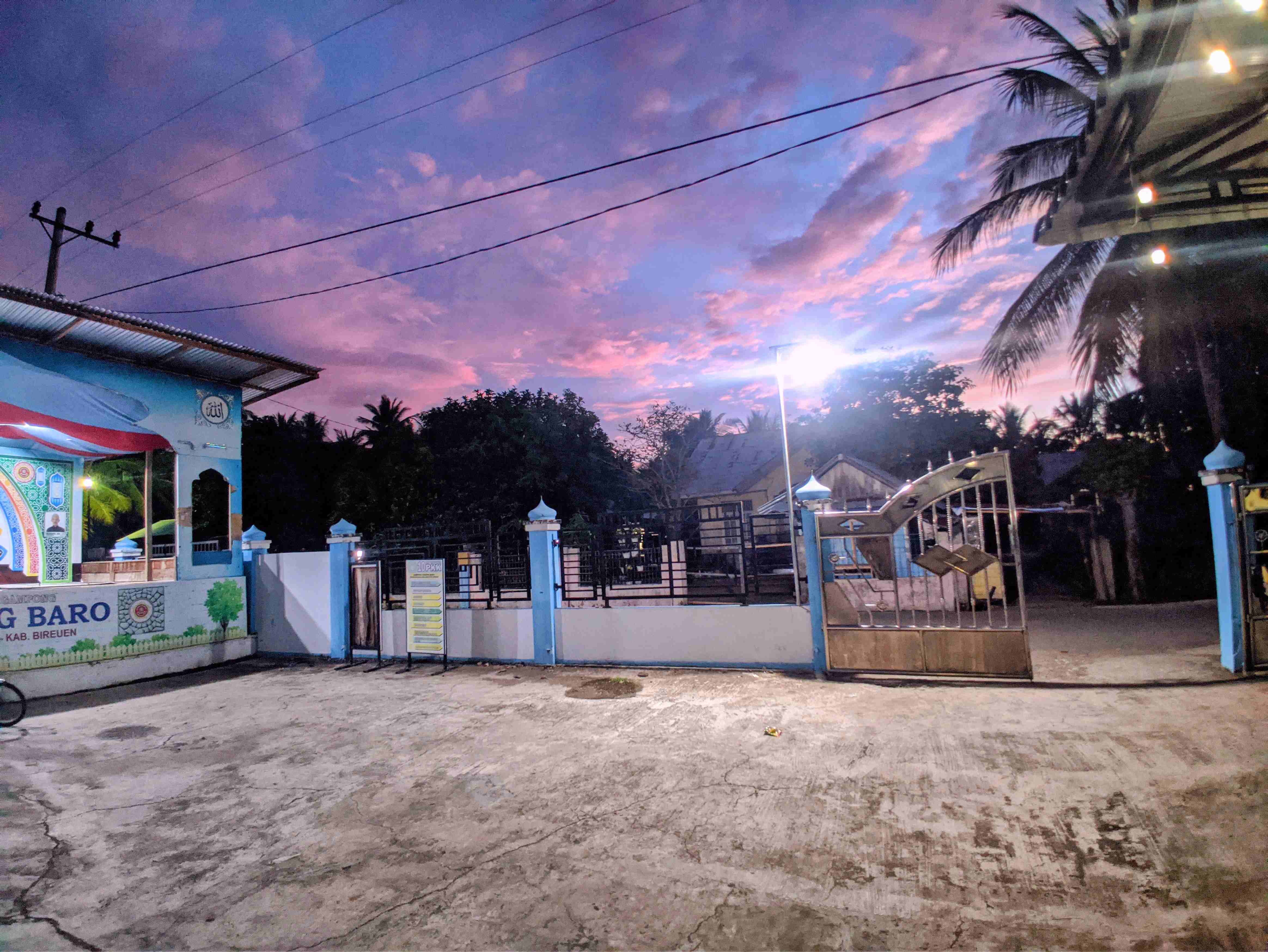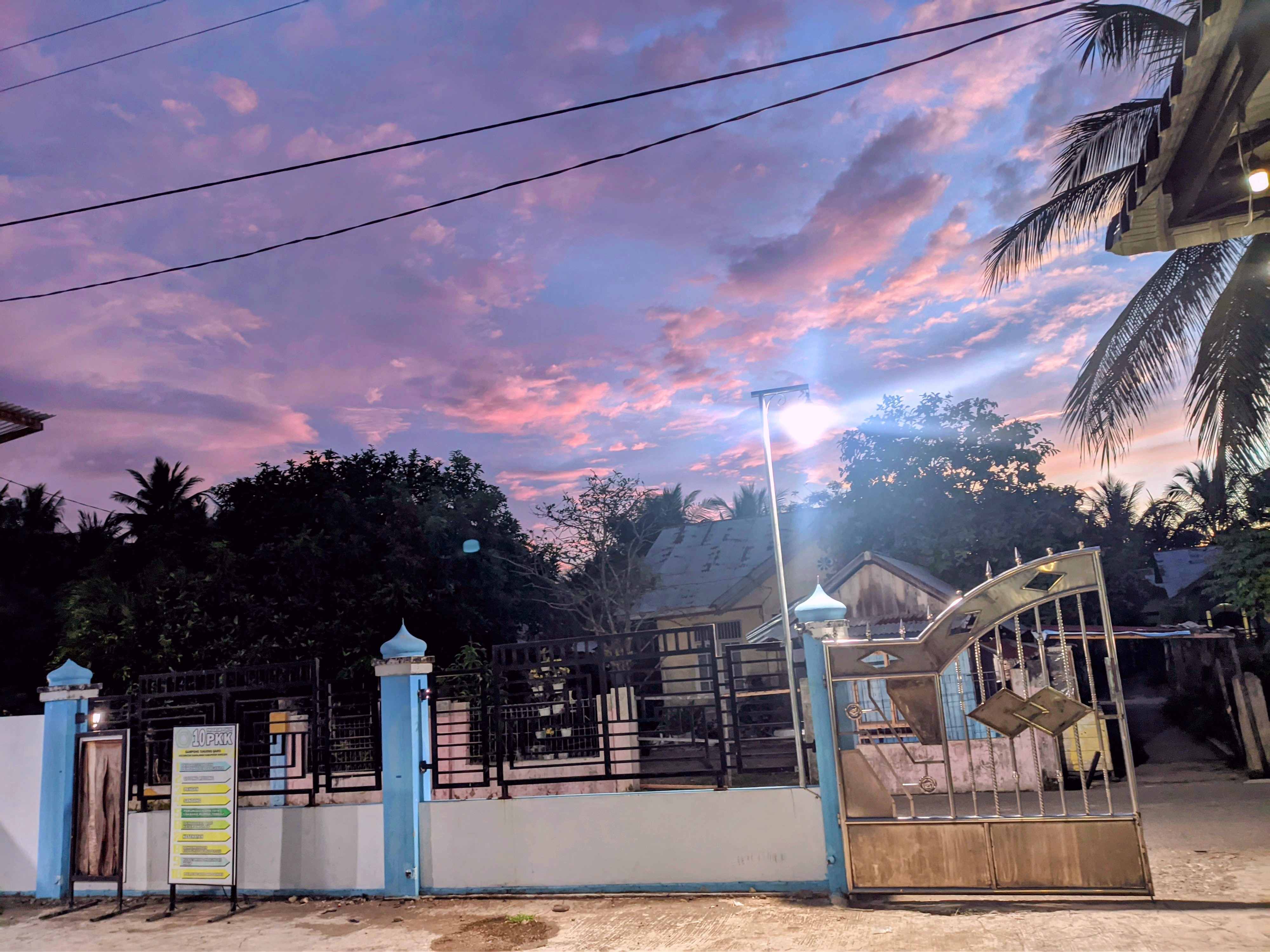 Ceritanya pulang dari sholat magrib di meunasah/ musholla kampung saya dan langit terlihat sangat indah warnanya. Pokoknya beda dari biasanya dan saya rogeh smartphone dan jeudarr, ini dia penampakannya saudara-saudara.