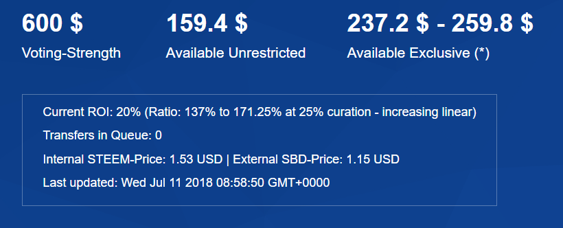 This change will last until the internal STEEM price has stabilized in comparison to the external exchange-price. Additionally, you will always see the current ROI at Smartsteem.com