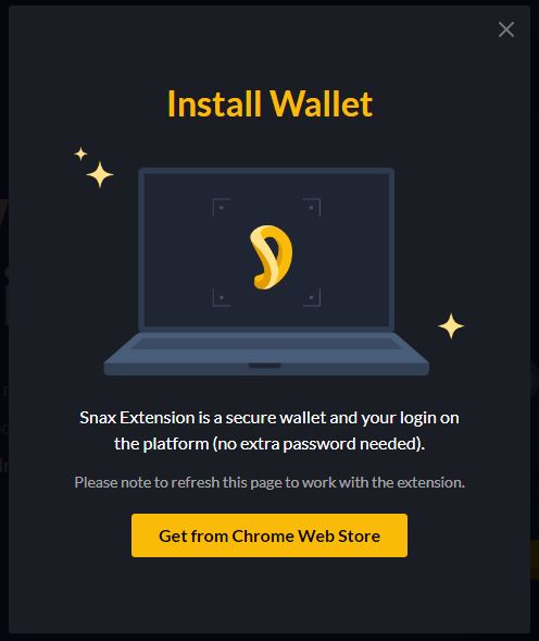 A pop up appears asking you to install snax chrome extension, click get the "get from chrome web store button"