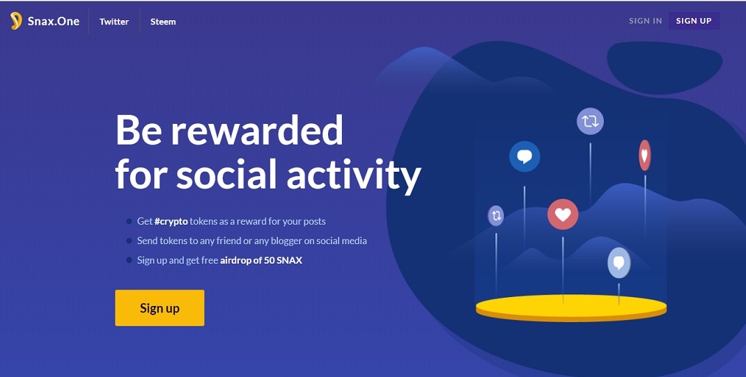 Snax is a blockchain platform. It was created for people to receive rewards for their social activity (tweets, Instagram posts, and so on) and to make instant free micropayments without leaving their favorite social platform. Developers can use Snax blockchain to create decentralized social applications (social dApps).