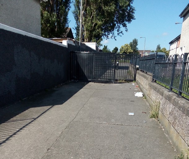 The lane, I didn't photo out the trash. You get this footage raw no editing. the real deal here, none of that fancy edit it to make it look great, Bare bones raw footage. The barrier is actually two barriers with about 3 feet between them. They are to deter stolen cars from using the lane as get away route.