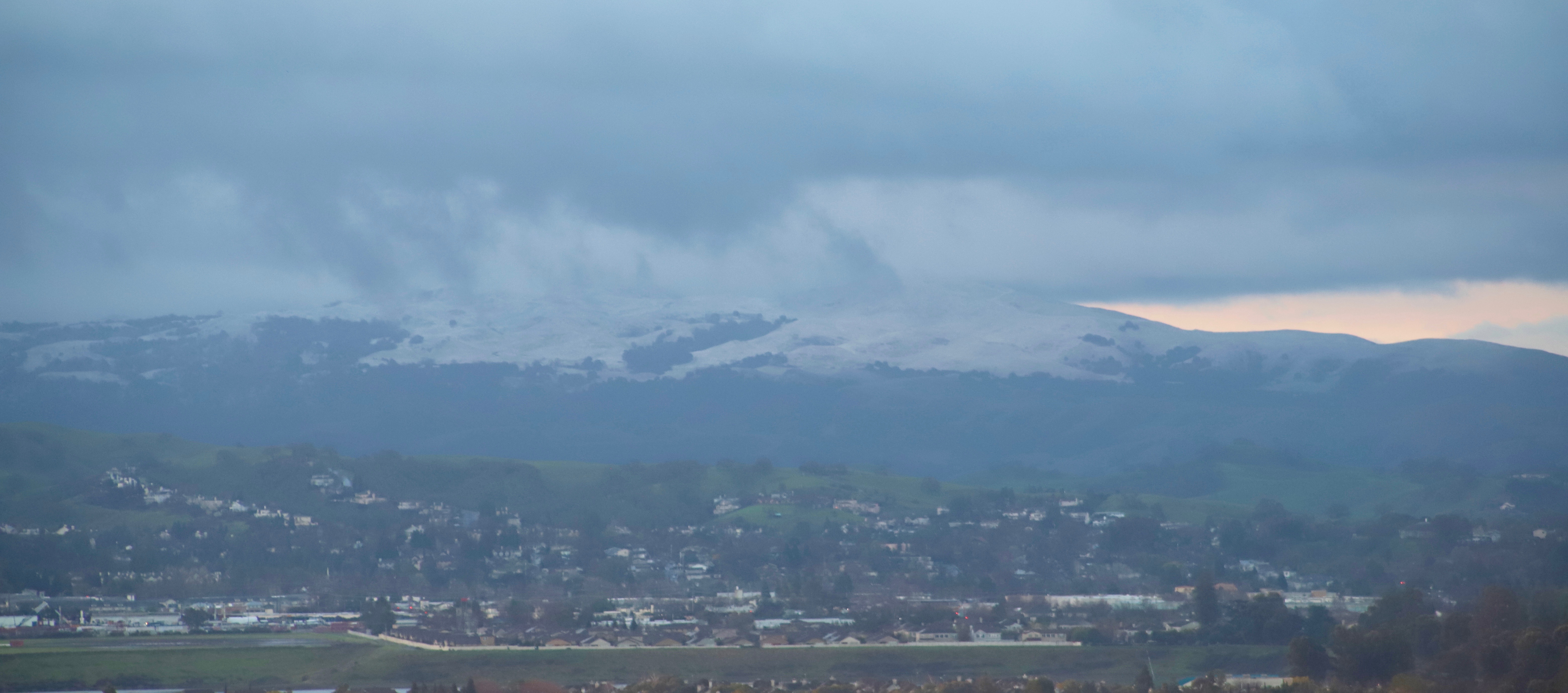 Ok this isn't a great photo but I had to post. We are in a valley at about 400ft above sea level. Snow last night came all the way down to 1000 ft so the hills bordering our valley were covered with snow today. This only happens on rare occasions. And when the clouds finally lifted most of the snow was melted already.