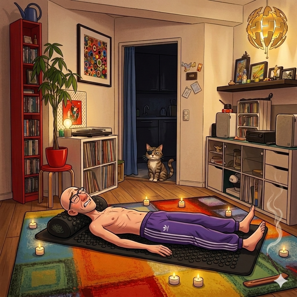 SelfCare ✨️ was man(n) im Alter halt so für den Erhalt der A̶t̶t̶r̶a̶k̶t̶i̶v̶i̶t̶ä̶t̶ Gesundheit tut 🧘🏼♂️ ... und dem Rücken tut das wirklich gut 🍀 der Bauch sieht allerdings wirklich nur in der KI so aus 😃