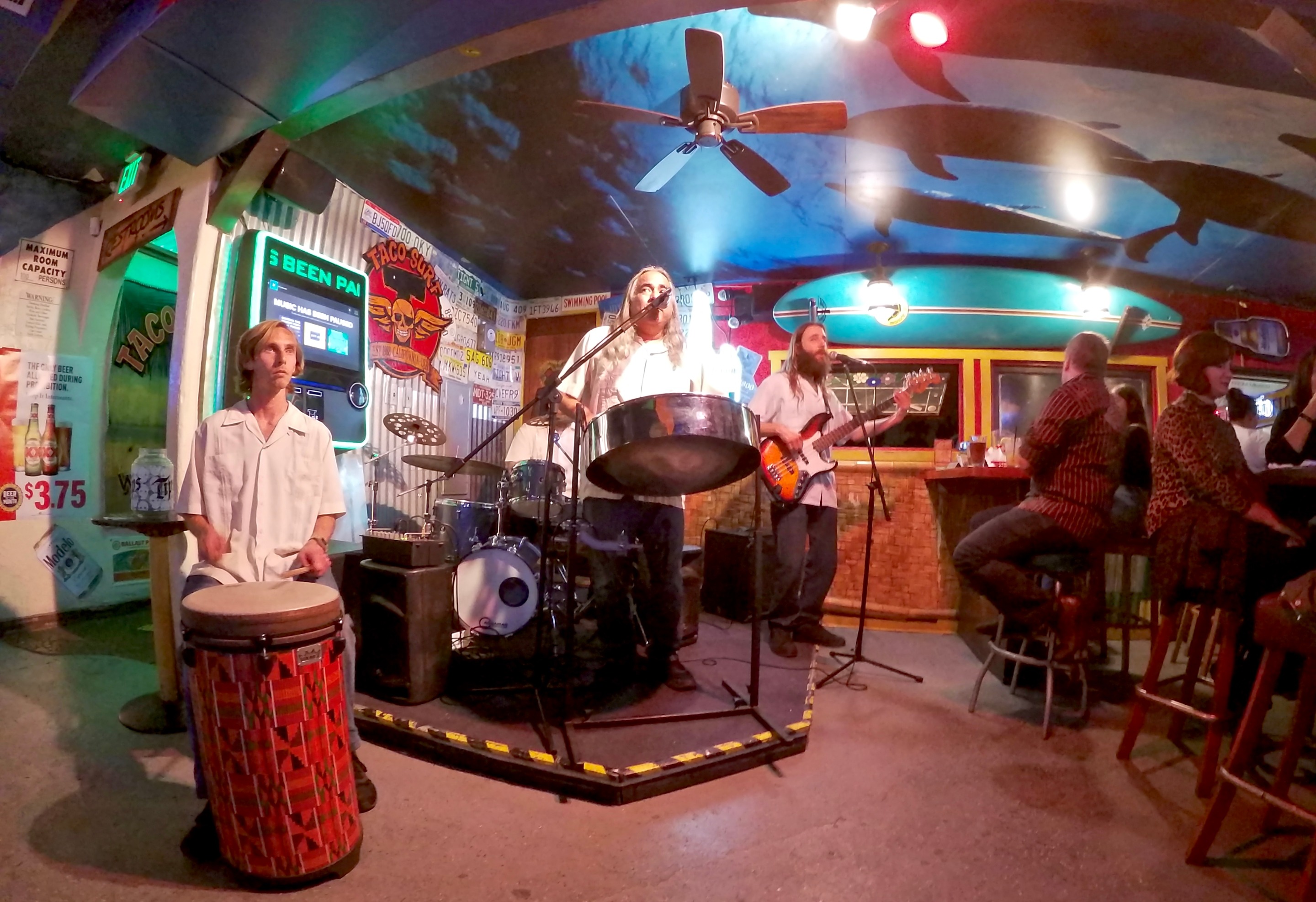 After the break the band hit the stage again with more island vibes. As it got later people started to leave, but I stayed to the very end and had a great time hanging out with all the guys in the band after the show. Joe(bass/vocals), Phil(steeldrum/ lead vocals), Max(drums), and Trevor(hand percussion) are all not only really awesome musicians, but also super chill dudes that are lots of fun to hang with!