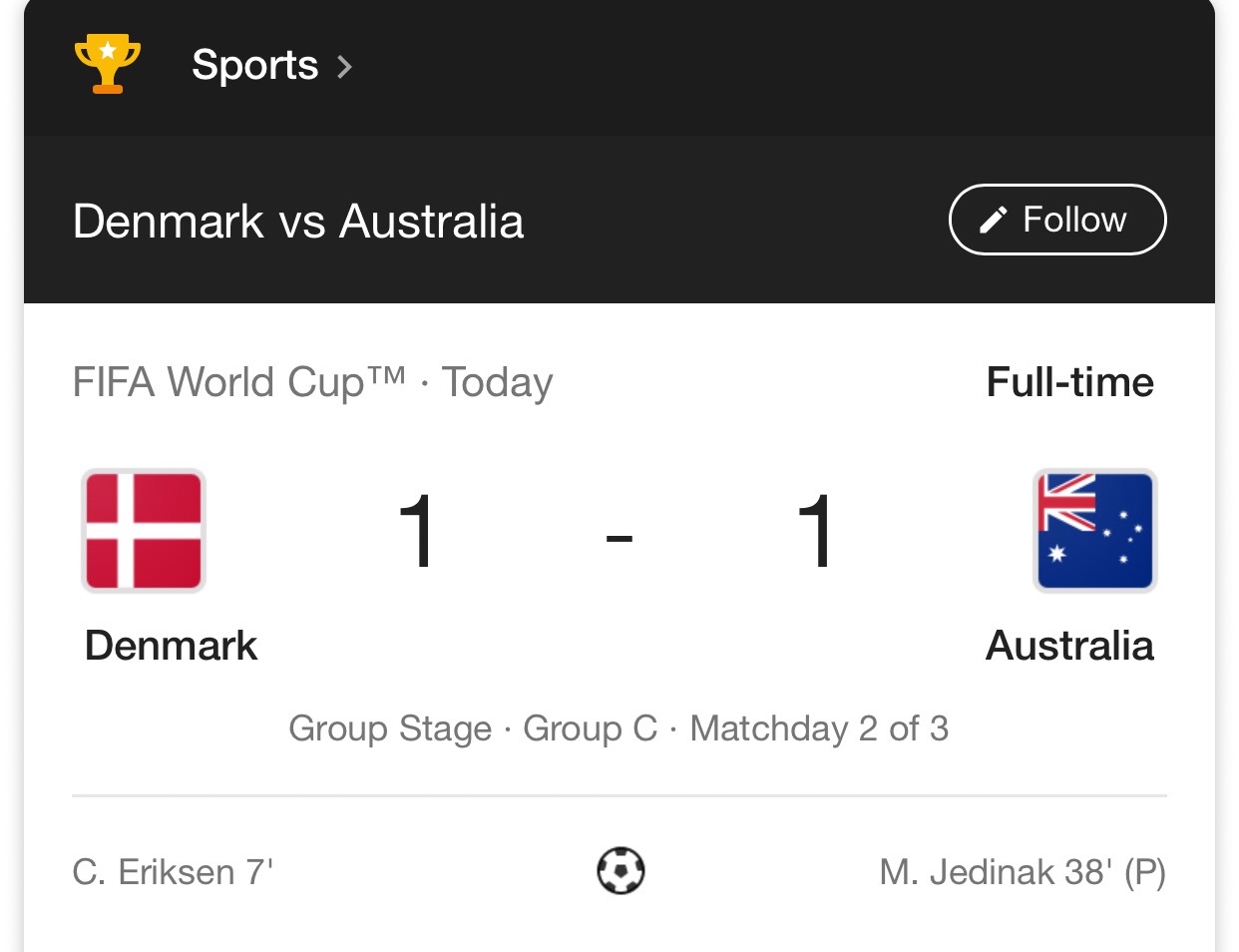 My Prediction was Correct: Denmark vs Australia 1 : 1