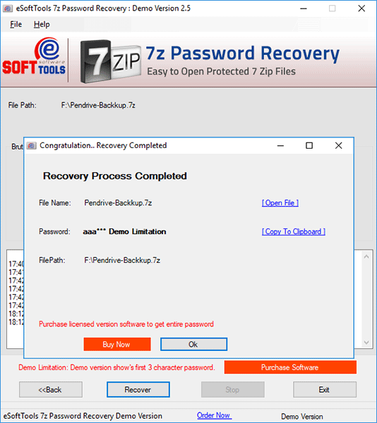 Star the recovery process and get immediate results. After recovery, easily put the recovered password to 7z file and unlock it easily.