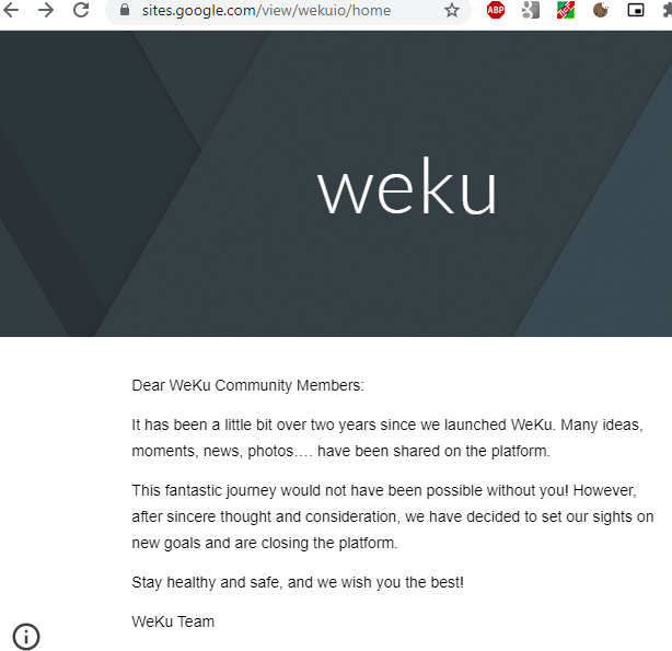 The only remains of the WEKU.io are a google hosted apology from the china scammers, and the github repo which shows recent activity for the new scam they are working in.