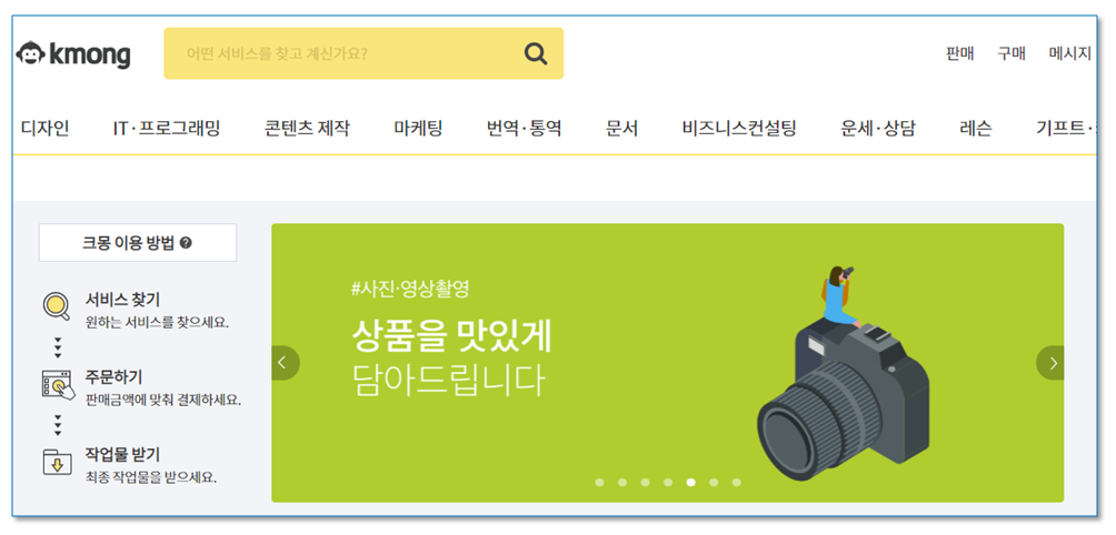 단지 여러분을 알리고 여러분의 재능을 알리고 친해지는 데 약간의 시간과 인내가 필요합니다. 크몽의 박현호 대표는 제가 잘 아는 지인입니다. 그는 대학생 때 창업해서 수십 번의 온라인 사업에 실패한 입지전적인 도전의 아이콘입니다. 이제 그는 성공의 길로 접어들었습니다. 끈기, 인내, 열정의 도전정신으로 크몽을 우리나라 최고의 재능거래 플랫폼으로 성장시켰습니다.