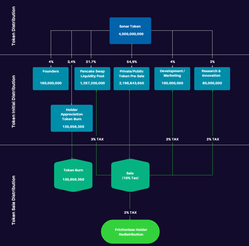 The required token for the Sonar platform will be $PING, a local utility token for the Binance Smart Chain network, which will operate under the BEP-20 protocol. The token will serve to power the platform and award the most active customers while keeping up with the consistent development and improvement of the Sonar platform.