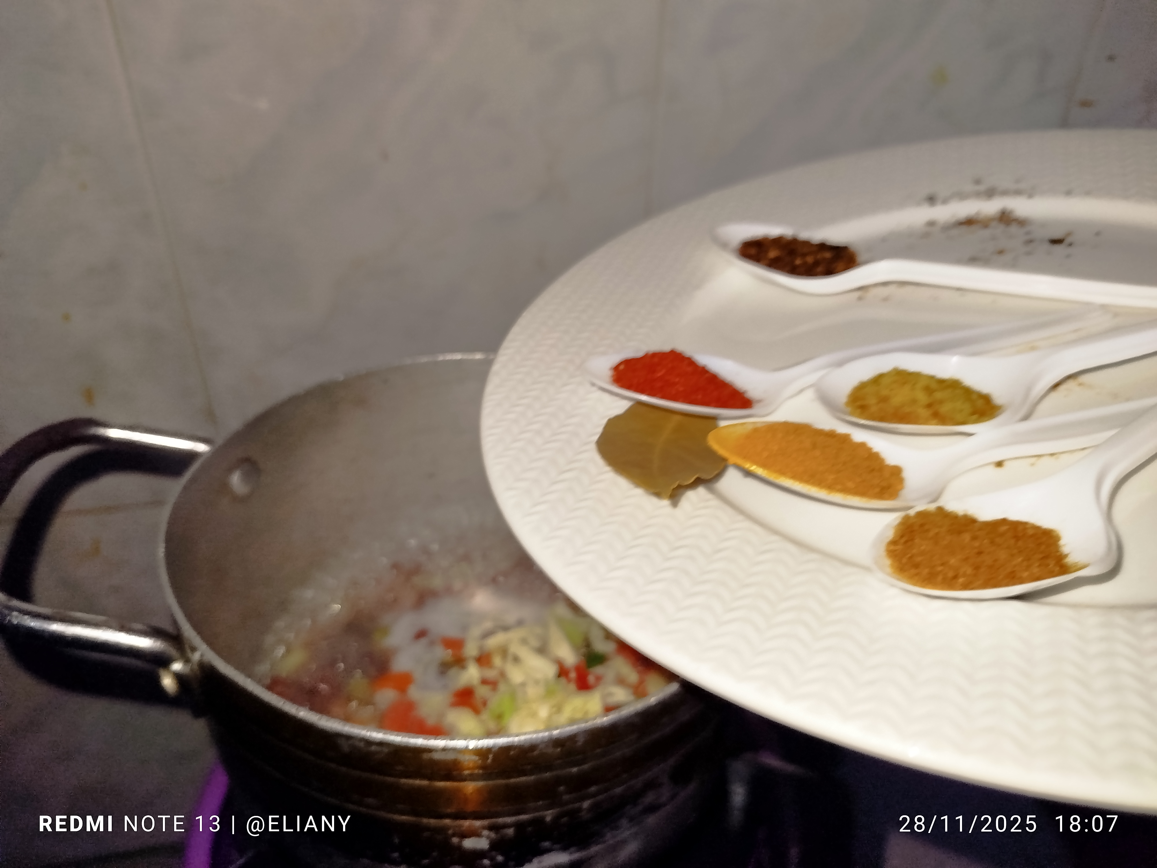 Add the spices as well and allow it to simmer, after some minutes it was done so I put it aside for it to cool while I prepared another pot to fry.