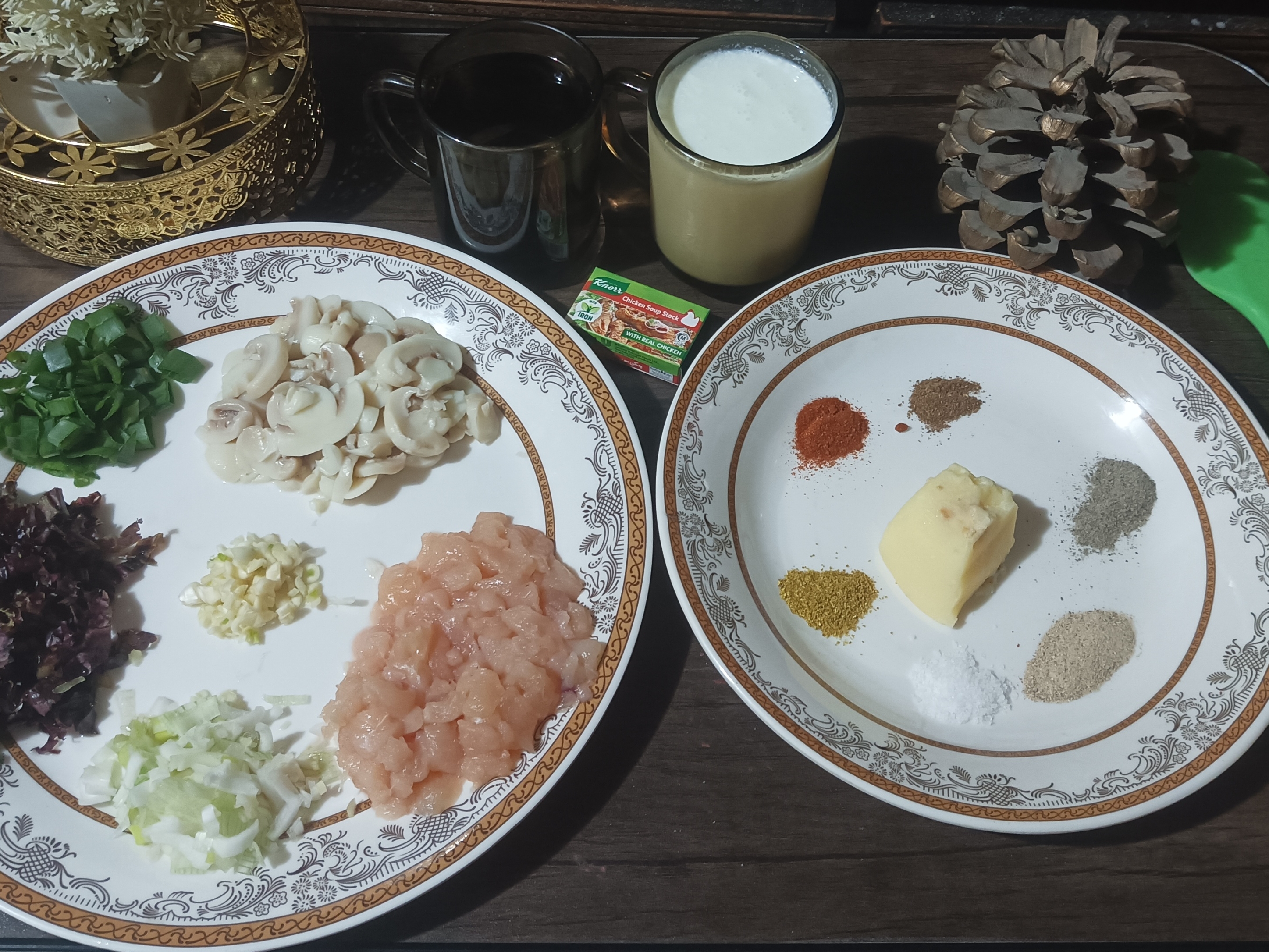 | Chicken stock or chicken cube | ³ cup , ¹ cube |