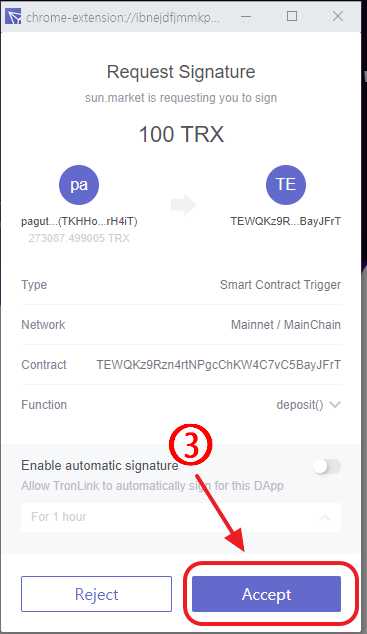 You'll see the pop-up from Tronlink.