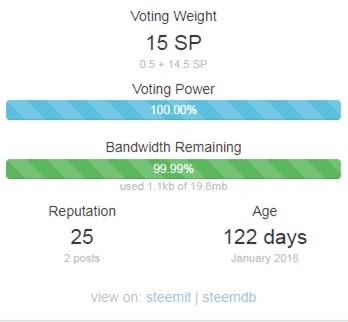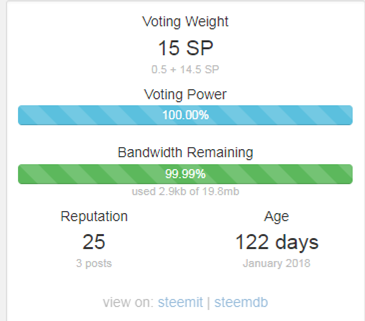 저는 현재 15 SP와 100% voting power, 그리고 99.99% Bandwidth가(19.8mb) 남아 있습니다.