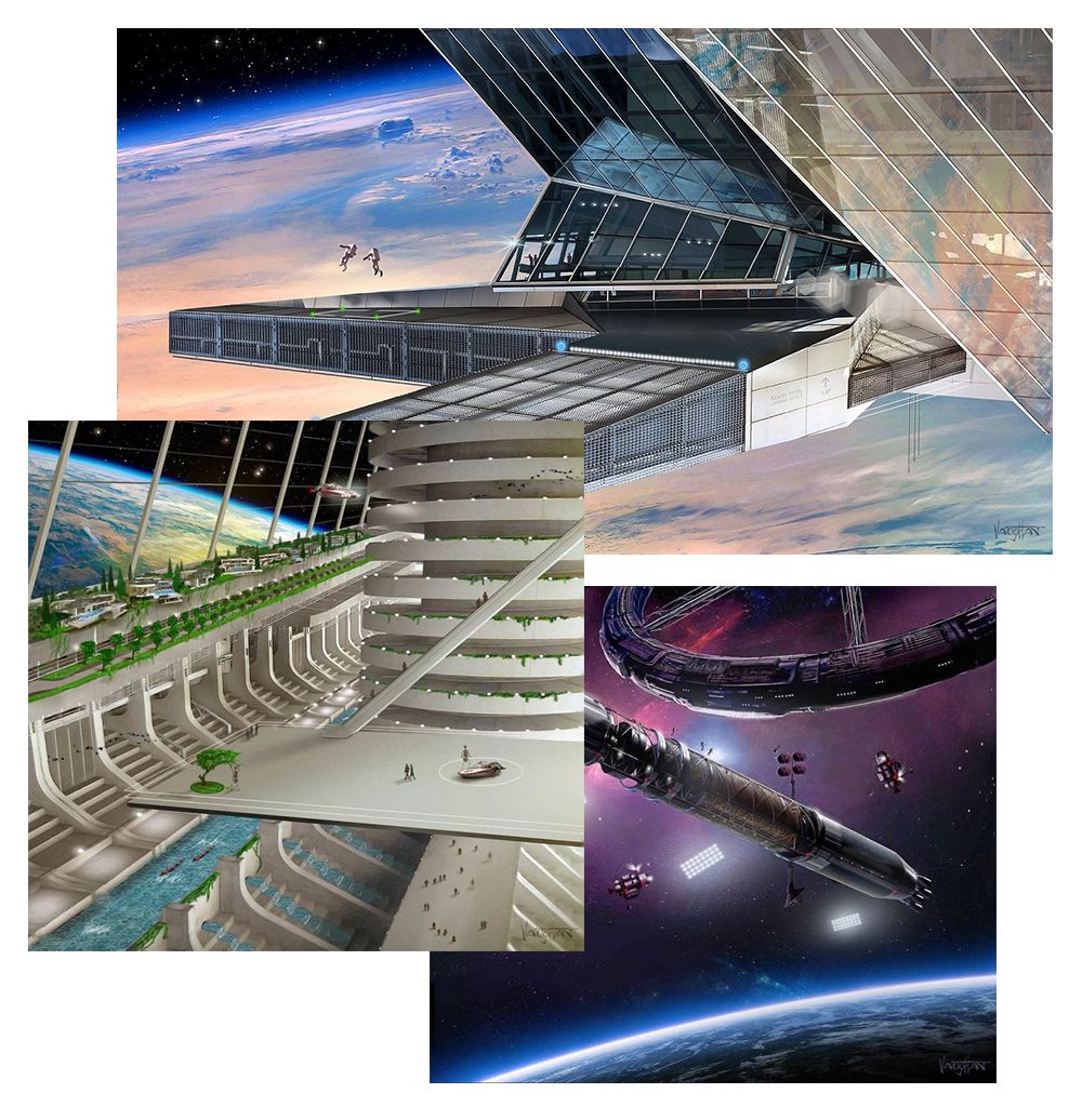 Modular housing for humanoid habitats made space look a lot like home. These drawings were the beginnings of renderings from outer space looking back at our beautiful earth.