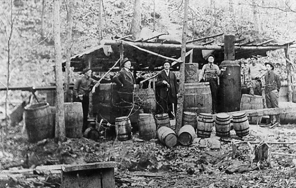 Durante el periodo de prohibición del alcohol o de ley seca su venta fue considerada como ilegal, se sabe que tuvo mucho efecto durante los años 1913 y 1920 en adelante o mejor conocido como la época de la sequia . A raiz de esto hubieron quienes vieron una forma de sacar provecho de esto y es en ese momento donde inicio la batalla por impedir el contrabando de licor por parte de las autoridades. Sotanos de edificios, bodegas e inclusive en el bosque eran los lugares predilectos por los contrabandistas para elaborar su licor ilegal.