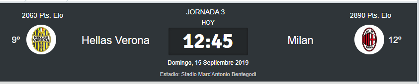 El AC Milan tiene que ganar si busca ir a los puestos altos de la Liga Italiana, y es una visita al recien Ascendido Hellas Verona, vamos a ver como le va al conjunto de Giampaolo.