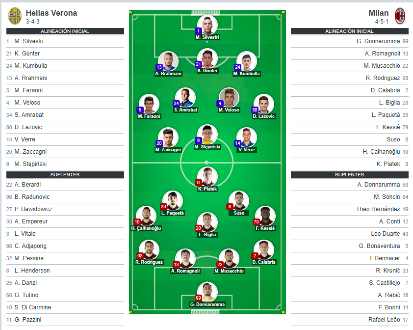 Alineaciones Hellas Verona vs AC Milan