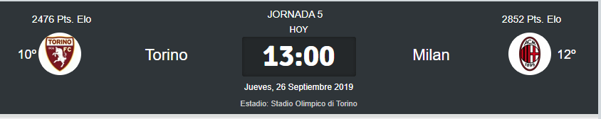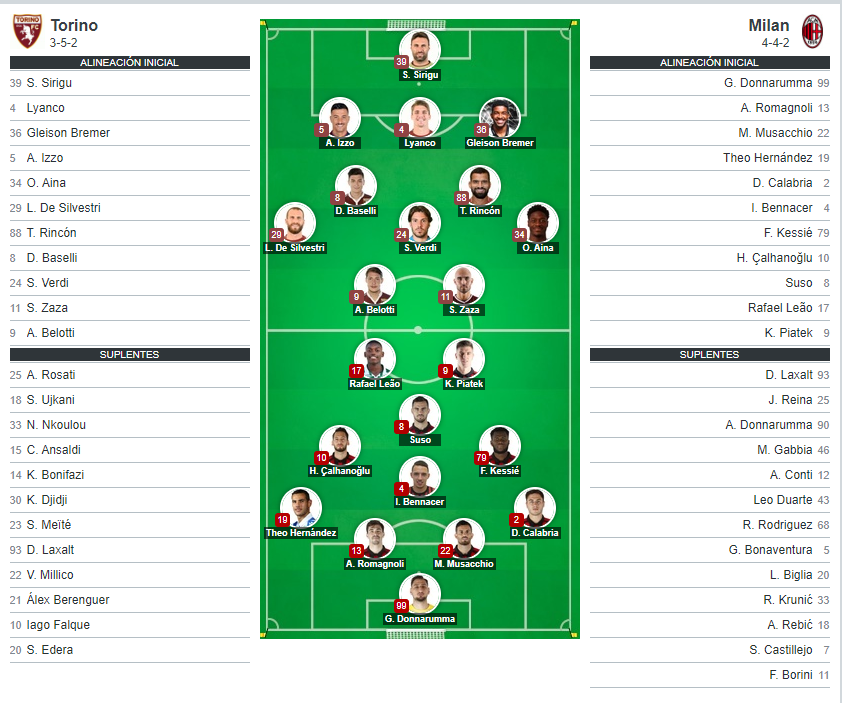 El Milan tiene que sacar este partido adelante si quiere mantenerse cerca de su objetivo que es Champions, en un partido que parece ser complicado de visita al Torino, vamos a ver como le va al equipo dirigido por Marco Giampaolo.