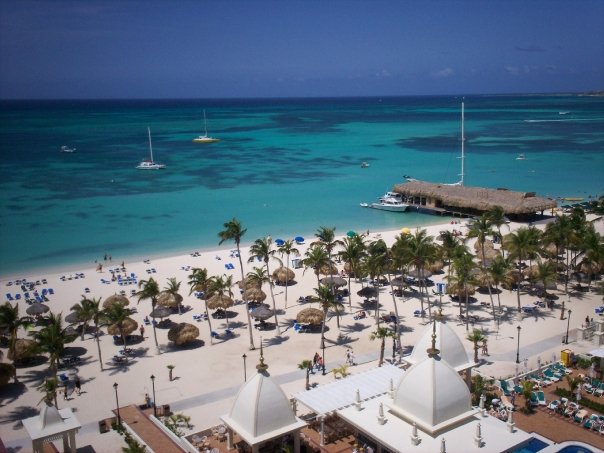 Vista desde el quinto piso de la piscina del Hotel Riu Palace en Aruba.