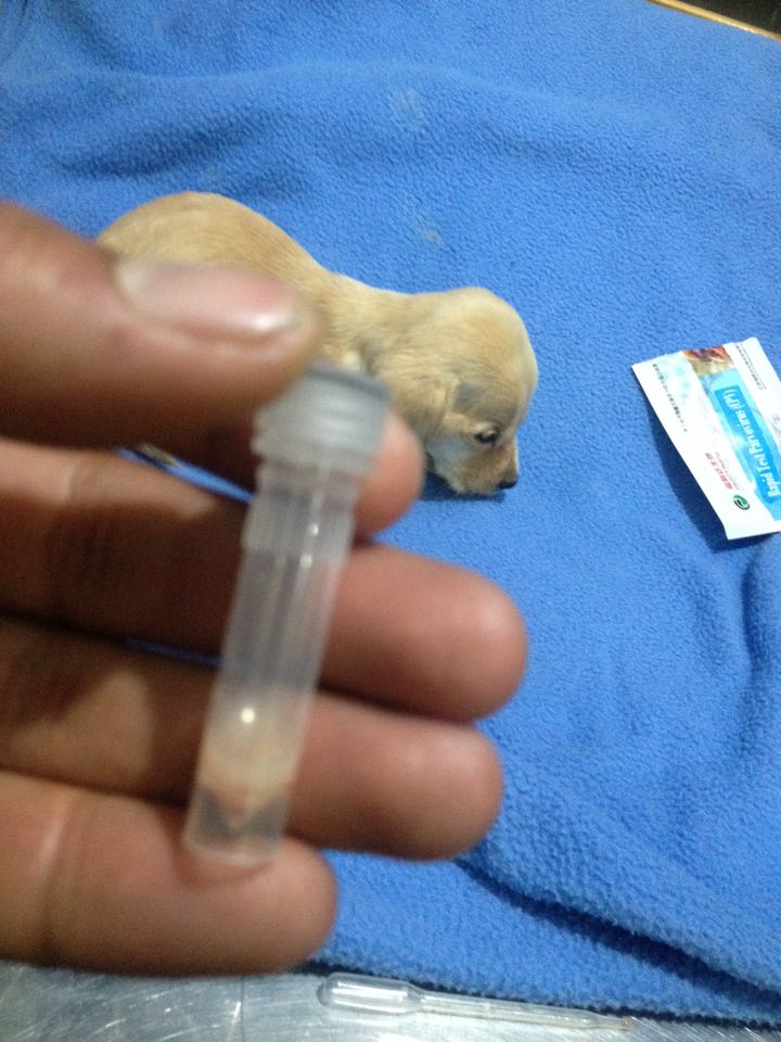 Pero gracias a la eficaz atención y experiencia tratando estos casos, logramos salvar la vida de este lindo cachorrito.