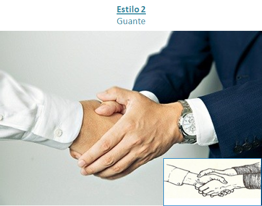2. Estilo-Guante: también conocido como “apretón de manos del político”. Este estilo de iniciación del saludo trata de dar la impresión de ser una persona digna de confianza y honesta. Pero cuando emplea esta táctica con alguien que acaba de conocer suele provocar el efecto contrario, puesto que el receptor sentirá sospechas sobre las intenciones del iniciador del saludo.