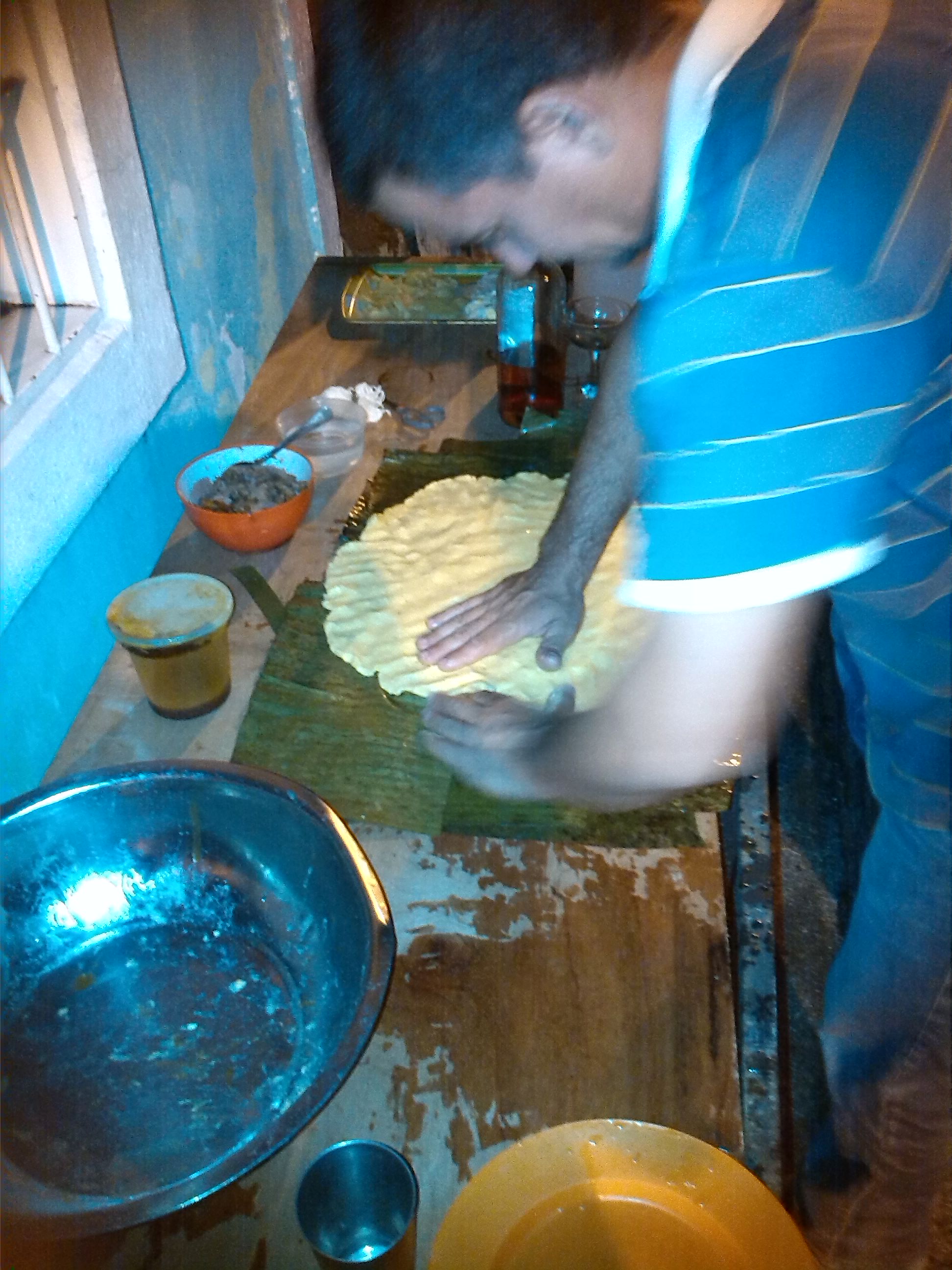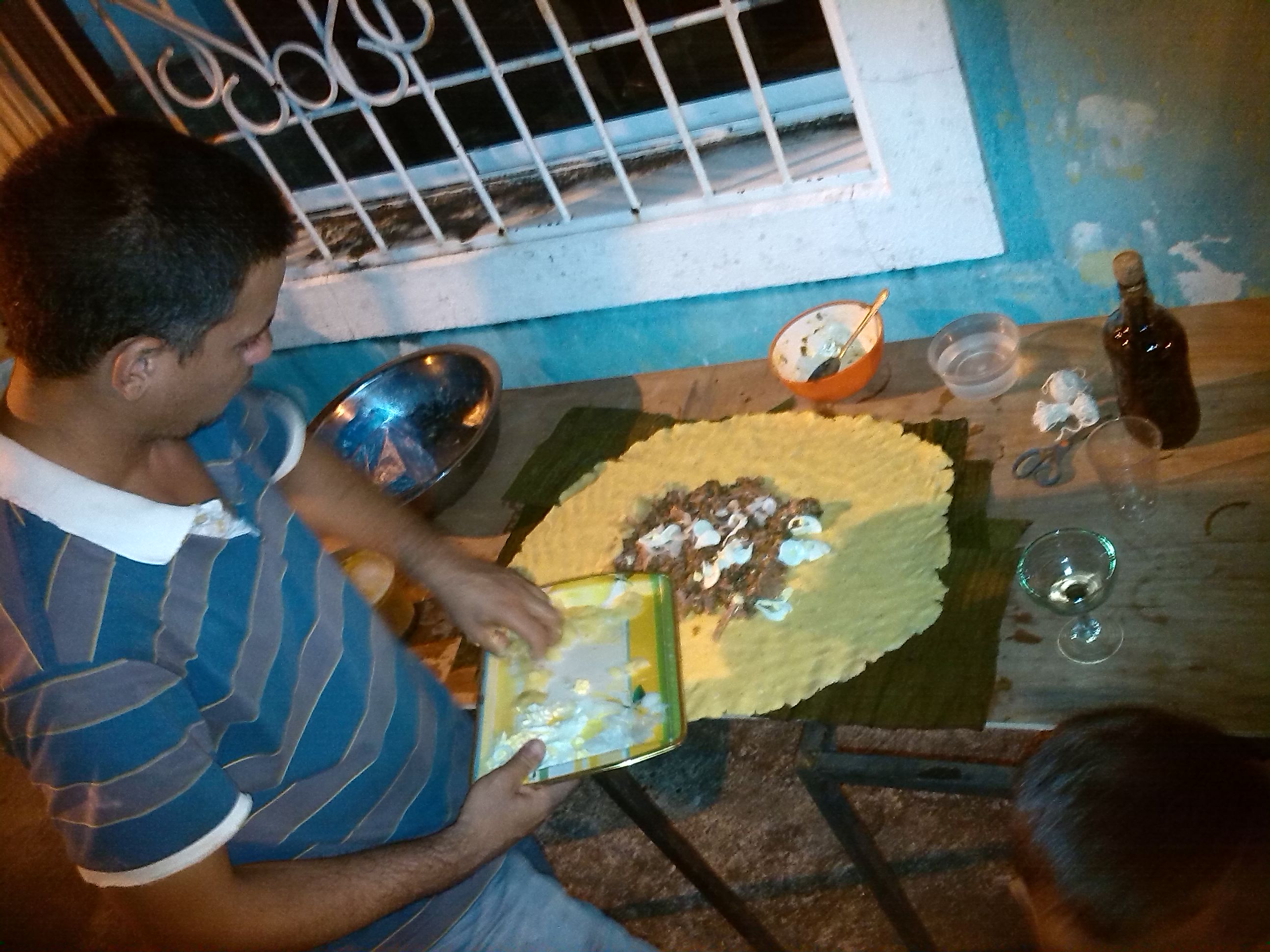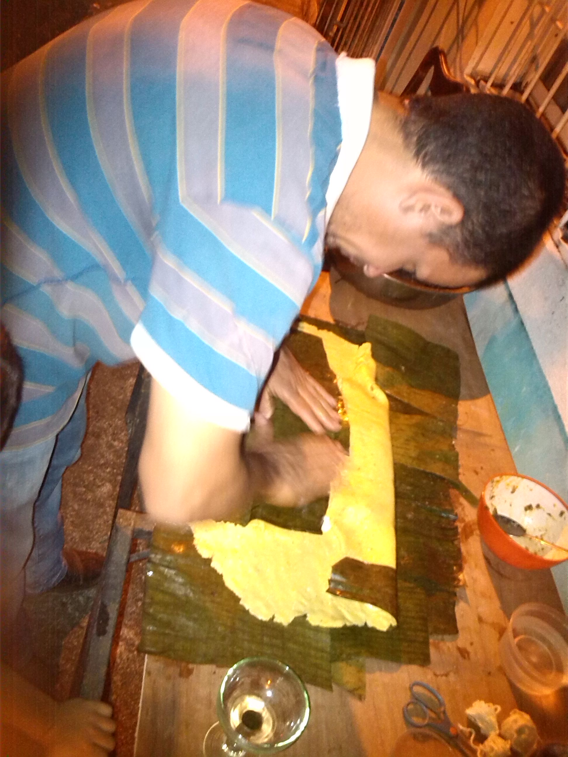 entre tragos y músicas realizamos este hallaca gigante que formó parte de la celebración de la navidad el año pasado y que hoy quiero compartir con ustedes mi comunidad steemit.