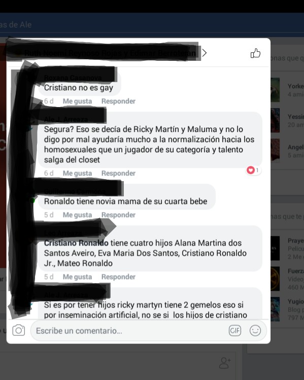 Quiero compartir con ustedes estas reacciones por un comentario que hice en mi perfil de Facebook:
