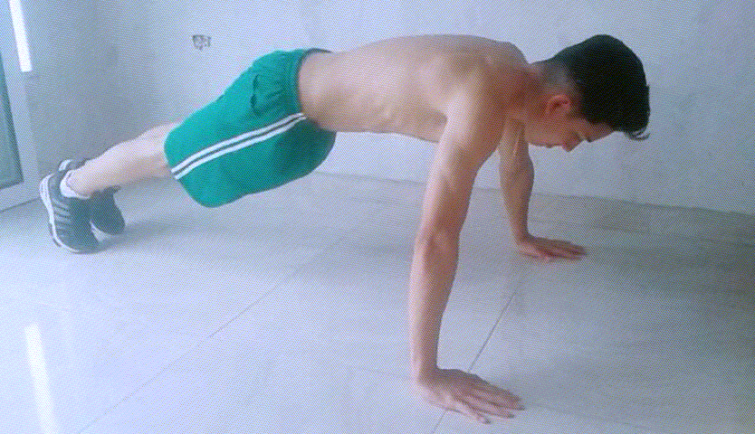 Esta es un tipo de flexión que consiste en colocar las manos debajo de los hombros y hacer el movimiento abajo y arriba, cuando se haga el movimiento se tocará el hombro con la mano contraria luego de manera inversa.