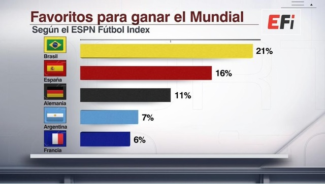 Con la capacidad de que cada equipo demuestre que puede obtener esta copa y lo especial de este Rusia 2018 es que con nuevos jugadores que están sonando y demostrando su gran capacidad de juego, como les había comentado entre los favoritos según ESPN están: