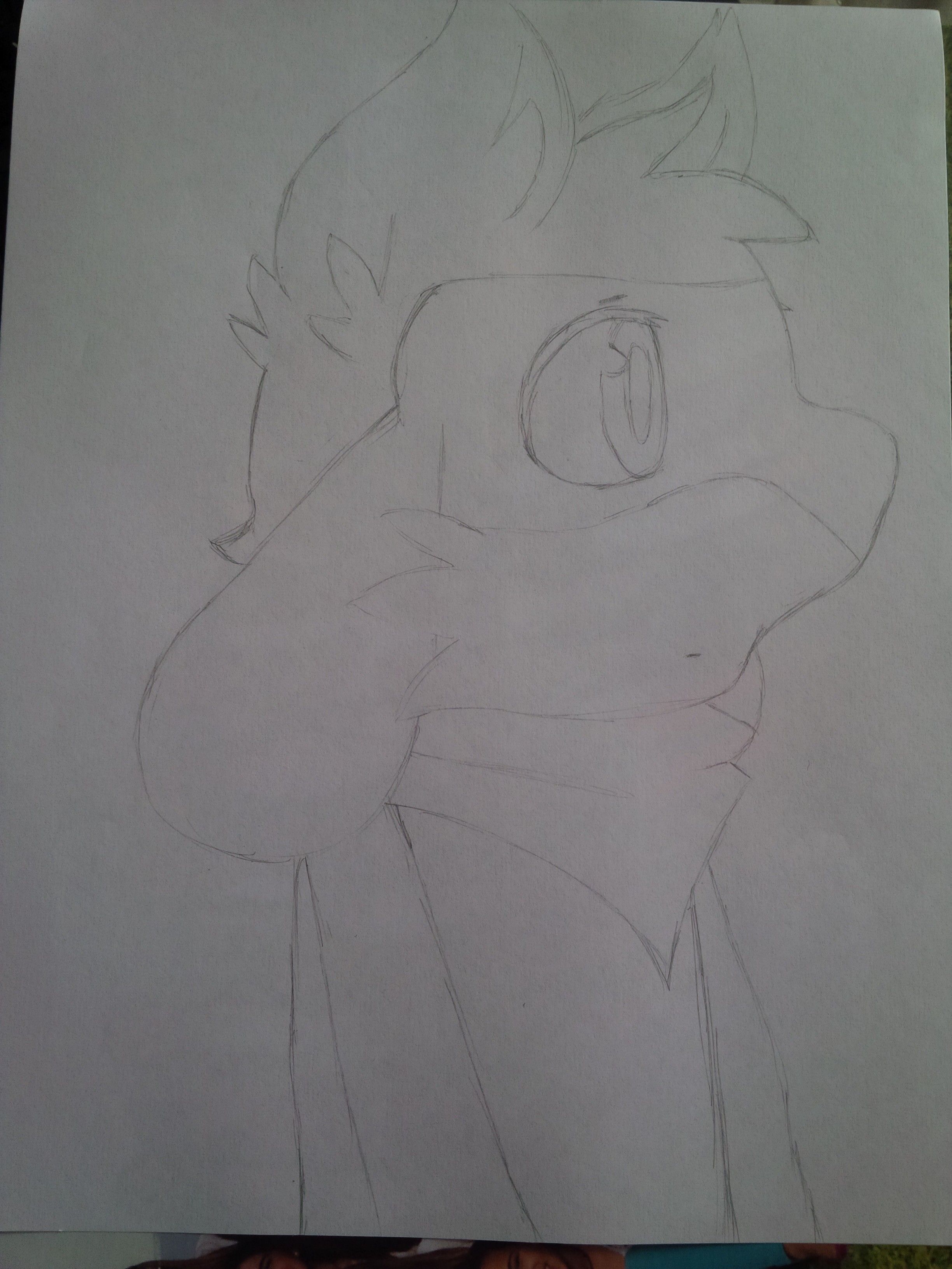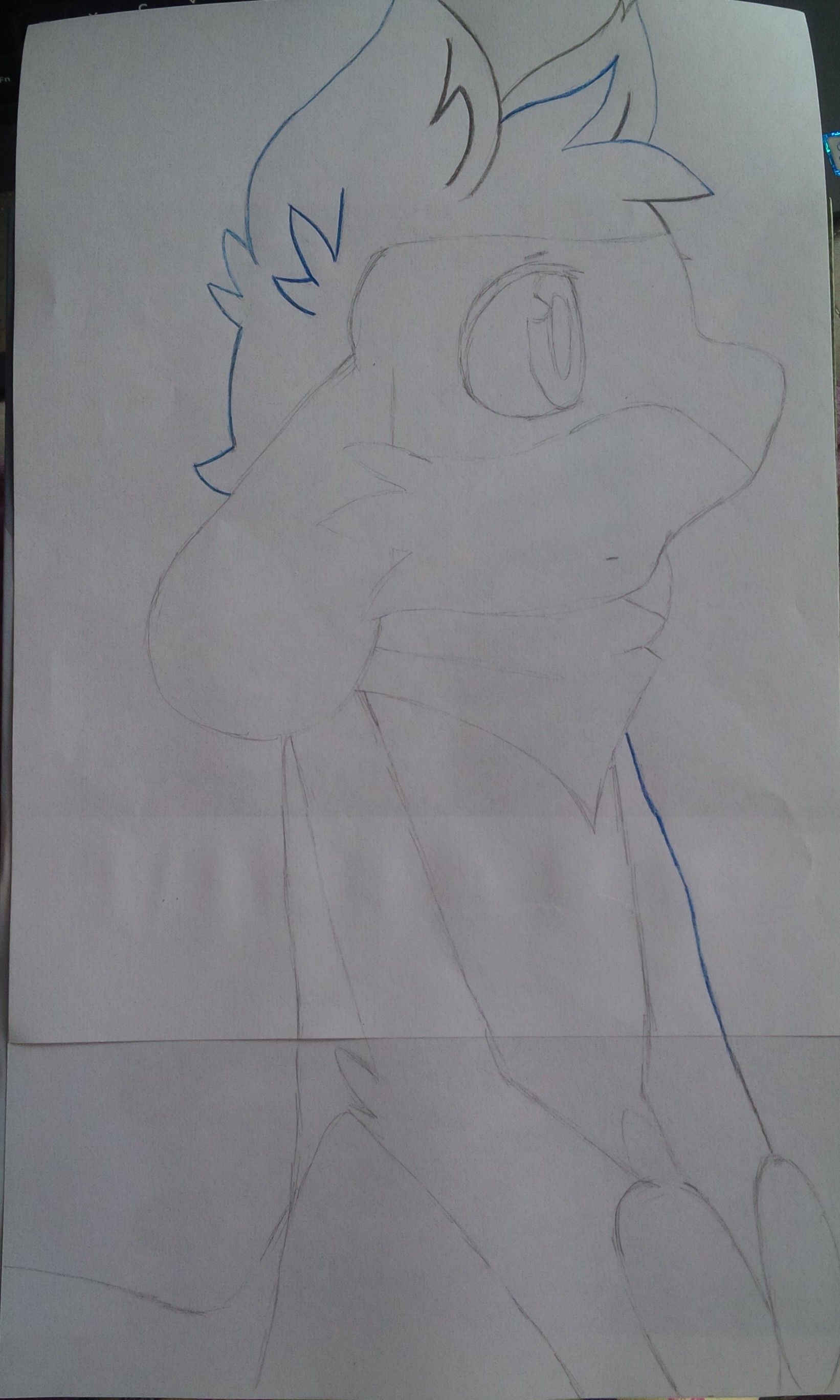 1 - Hice la silueta con el portaminas. Me di cuenta que hice la cabeza muy grande y tuve que agregar una hoja abajo para terminar el dibujo.