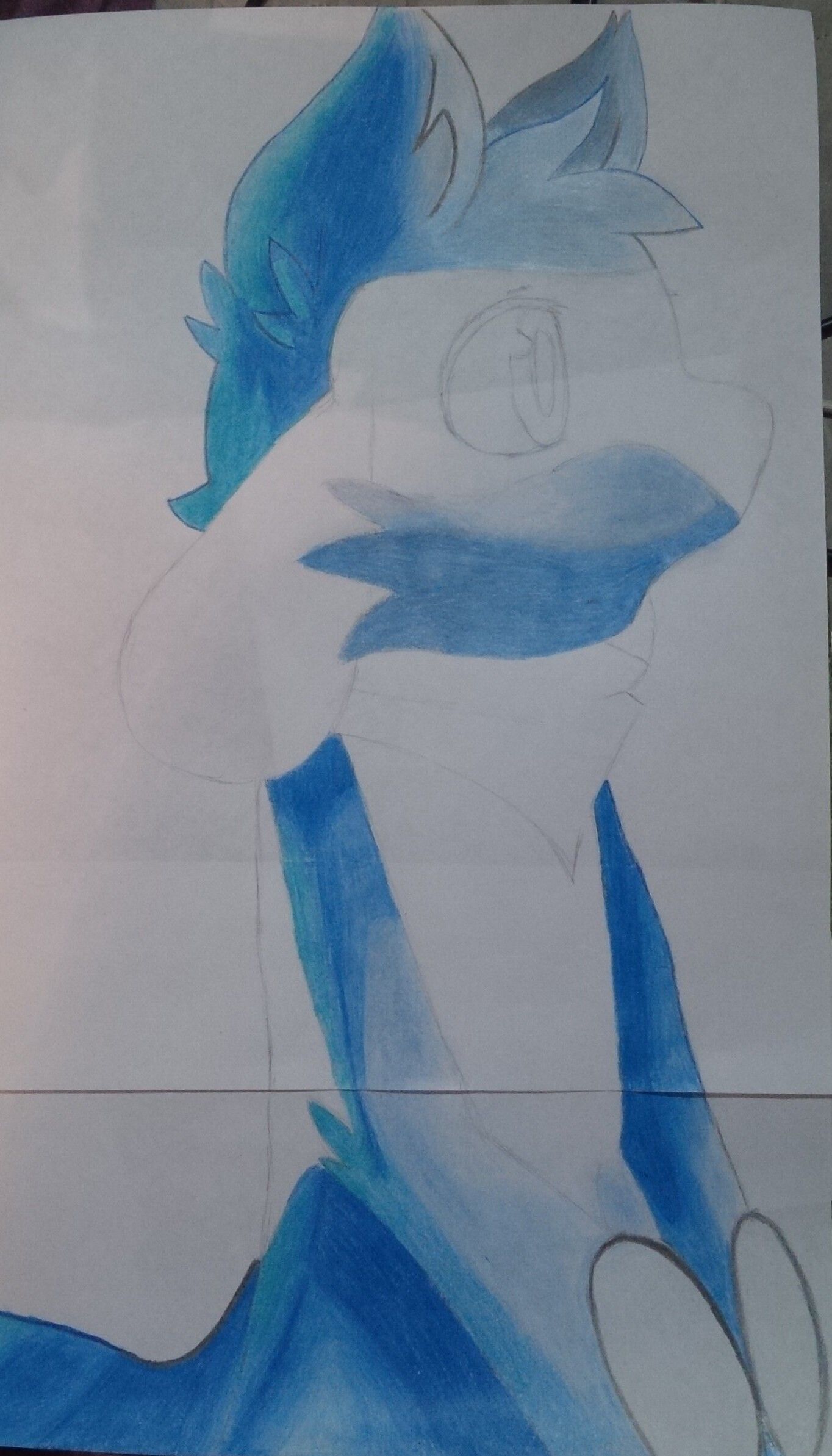 2 - Luego repasé los bordes en color y fui coloreando todo lo que fuese en azul. Empecé por los tonos más oscuros y luego hice un degradé para los tonos más claros. El azul más claro lo hice con ayuda del color blanco.