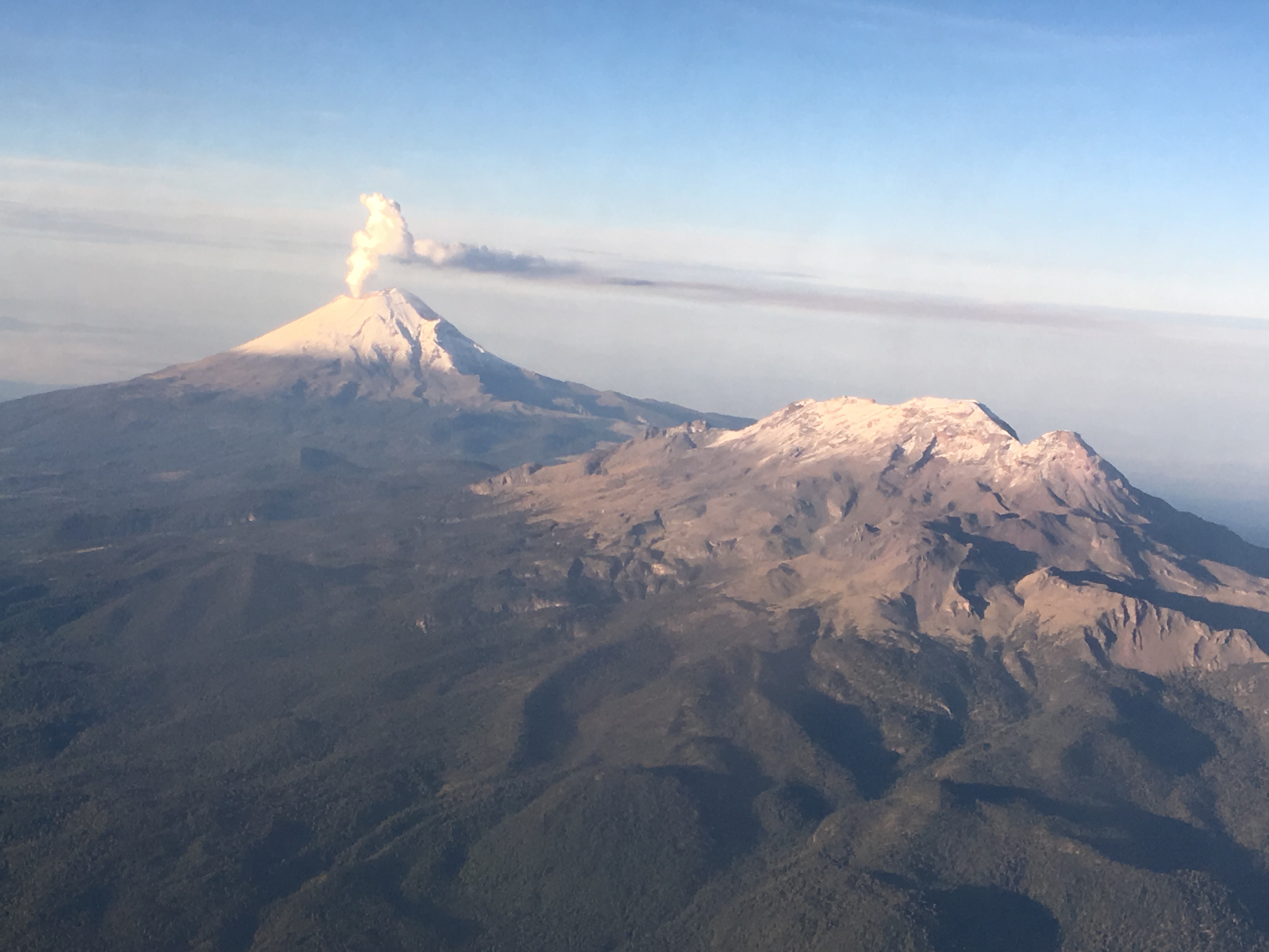 Esta última es de otro viaje, se ven claramente los dos volcanes, Popocatépetl e Iztaccíhuatl.