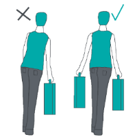 Deberemos repartir la carga en partes iguales a ambos lados de nuestro cuerpo para evitar descompensaciones o posturas forzadas. Para ello utilizaremos mochilas, siempre que se pueda, de dos asas evitando colocar los bolsos en un solo hombro.