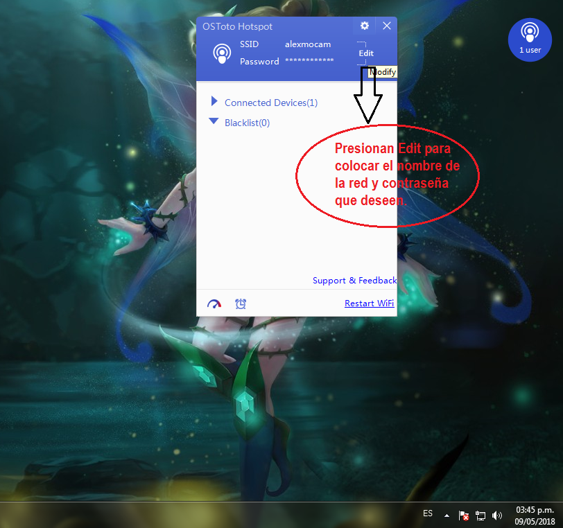 Me senté en su ordenador y le descargue OSToto Hostpot, es uno de los mejores ya que es fácil de usar. (Es el que uso en este momento para compartir Wi-Fi desde mi ordenador) El programa pesa 10 MB y se descarga rápidamente. Luego de haberlo descargado lo instale y lo puse en marcha y listo, mi amiga estaba feliz porque tenía señal Wi-Fi en toda su casa, me lo agradeció mil veces. Debo señalar que el programa solo está activo mientras el ordenador este prendido, cuando se apague el equipo la señal desaparecerá. Aca les dejo algunos capture con instrucciones de OSToto que uso desde mi pc.