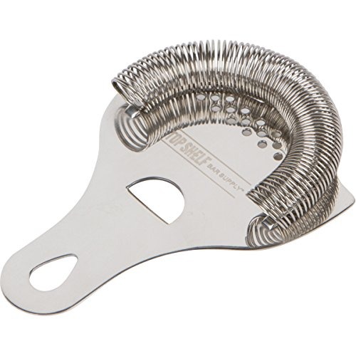 También se le llama colador de oruga o gusanillo, sirve para retener los hielos y elementos sólidos en la coctelera.