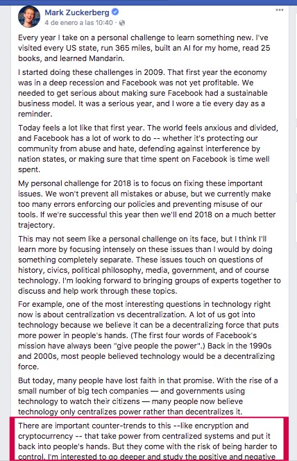 Que vá, no confio para nada en Zuckerberg, ese pana solo piensa en su beneficio personal, y probablemente esa reflexión la escribió alguien más para el... Facebook si integrara las criptomonedas, pero no para beneficio de los usuarios, si no para beneficio de la propia plataforma y de Zuckerberg...