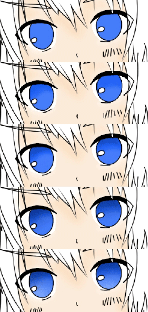 son los ojos, siempre trato de empezar a pintar por donde empece a ilustrar, utilizando 5 tonalidades distintas de azul para los ojos, cada una hecha por separado.