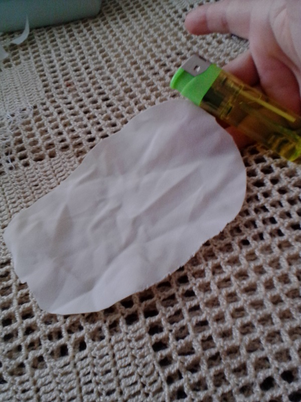 Todo cintillo debe de tener una base para montar todas las aplicaciones que va a llevar, por lo que tomé un pedazo de tela de razo, lo corté en forma de óvalo y le quemé las orillas para que no se deshilachara.