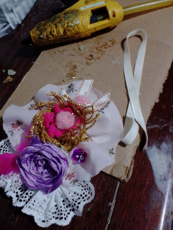 Todo comenzó al fallecer mi abuelita quien era costurera profesional, y heredé toda su bisutería, cintas, telas, aplicaciones y muchas cosas hermosas que me enamoraron, fue como cuando le regalan un juguete nuevo a un niño.