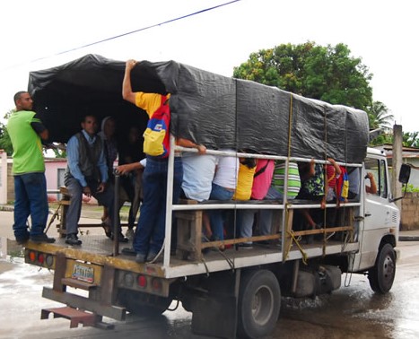 La distancia entre Camaguán y Calabozo es alrededor de cien kilómetros, hablamos de medidas realizadas luego que se construyó la carretera, obra de vital importancia para Guárico y Apure. Recalcamos la extrema imposibilidad de los lugareños de comunicarse con otros poblados por el aislamiento sufrido más de la mitad del año. En enero del siguiente año, cuando se abría el camino llegaba el primer camión, vehículo más alto y por tanto apto para adentrarse en las tierras pantanosas, los cauchos envueltos en unas cadenas que facilitaban la labor de levantar el carro cuando se quedaba atascado en el pantano porque el suelo en muchas partes permanecía inundado. (Quiero destacar el hecho de que las palmeras que forman parte del ecosistema permanecían en pie, airosas en medio del agua que las inundaban; estas plantas tienen la capacidad de sobrevivir tanto en verano como en invierno, y se agrupan formando los palmares, refugio de la fauna silvestre). A todas estas, en el pueblo todo era excitación, fiesta, los lugareños salían a recibir a los primeros camiones en los cuales llegaban los comerciantes y visitas que acudían al lugar. A veces arribaban uno o tal vez dos vehículos juntos. Tocaban sus cornetas cuando se aproximaban al pueblo y la gente aplaudía, lo muchachos brincaban y reían, era todo un espectáculo para los camaguaneros.