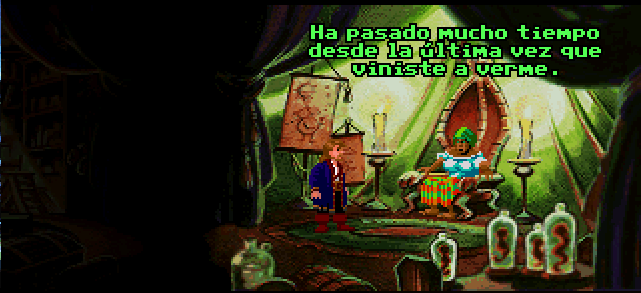 Personaje bastante misterioso, del cual no se conoce su nombre. En mi anterior publicación comenté en una nota que existían otros personajes y que los mencionaría confome adquirieran importancia. Este personaje es de gran importancia, importancia que para mí comienza aquí. En el juego anterior te decía un par de cosas presentándola como una mujer que puede ver lo que le depara en el futuro a nuestro protagonista. En Monkey Island 2, aprenderemos de ella algún par de trucos que nos ayudarán a avanzar en la historia, cosas como construir un muñeco vudú o un elixir para revivir a los muertos por un corto período de tiempo. Siempre aparece en una casa o choza, con objetos para brujería.
