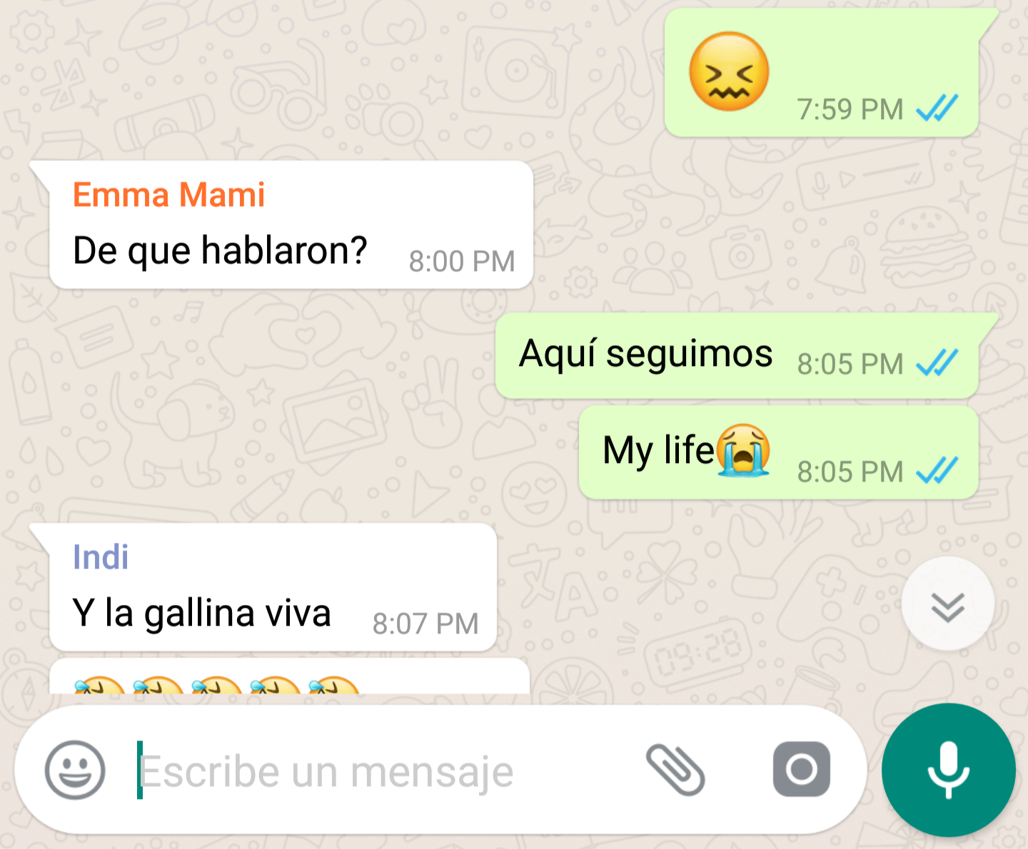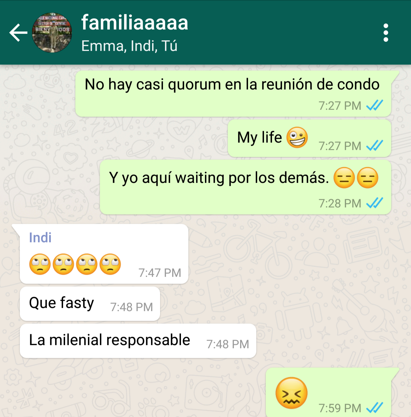 Acá mi drama por whatsapp en el grupo de la Familia donde esta mi hermana , mi mama y yo.