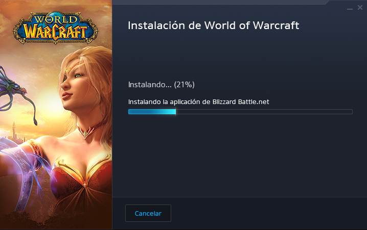 Ahora sí, ya podemos ver el Launcher de Battlenet, si no vemos la descarga de WoW, lo que haremos será pulsar sobre el botón de “World of Warcraft” que se encuentra en el panel de la izquierda y podremos ver la barra de progreso mostrando lo que está descargando y lo que le queda para tener el juego completamente descargado.