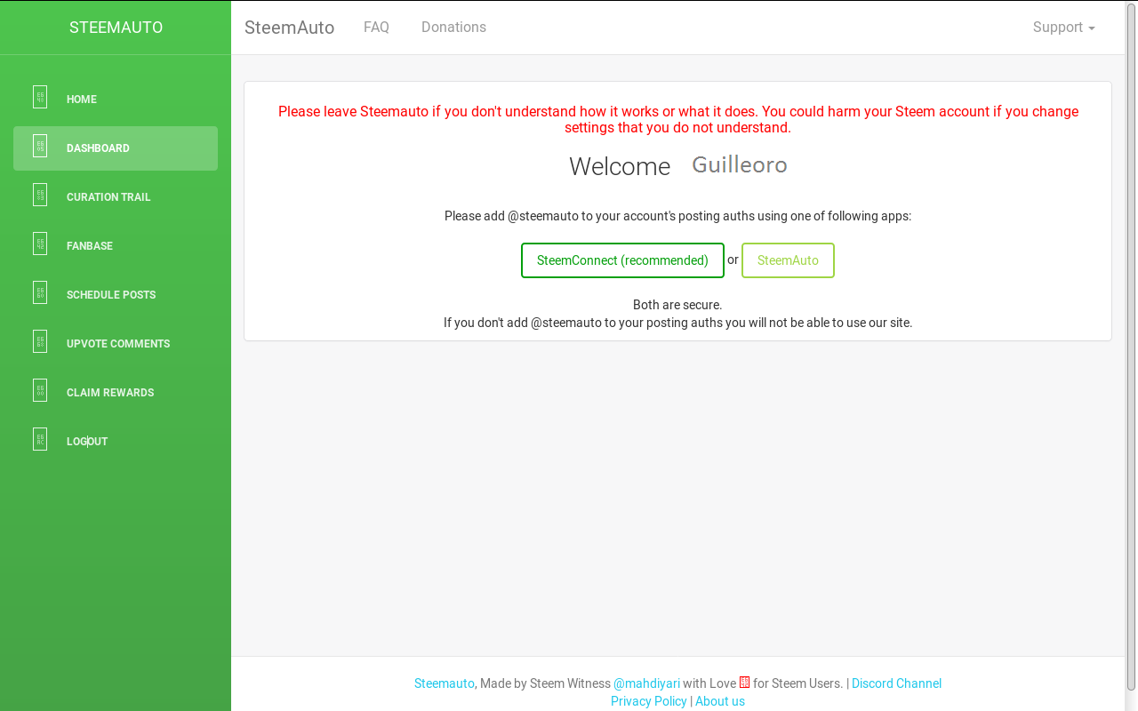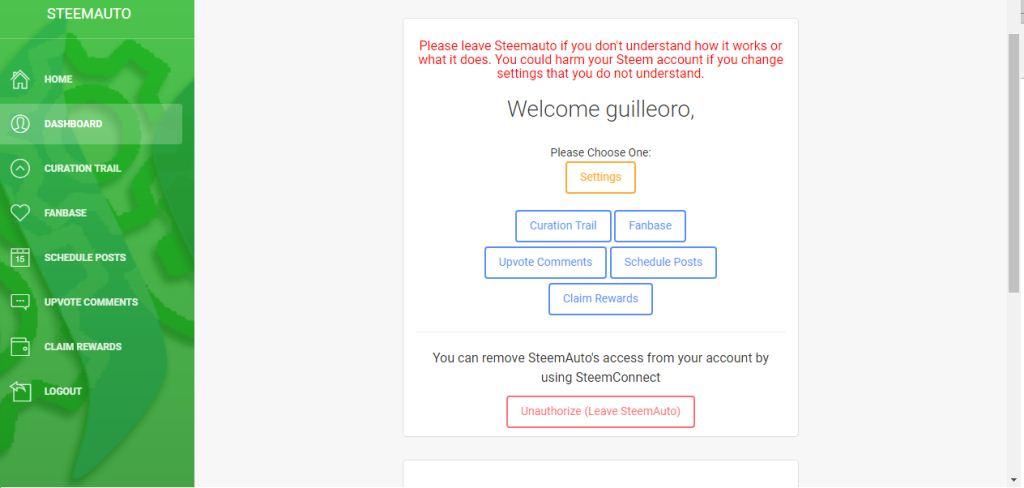 Al estar ya en steemauto, tendrás unas opciones. Haces click en la opción steemconnect y continúas.